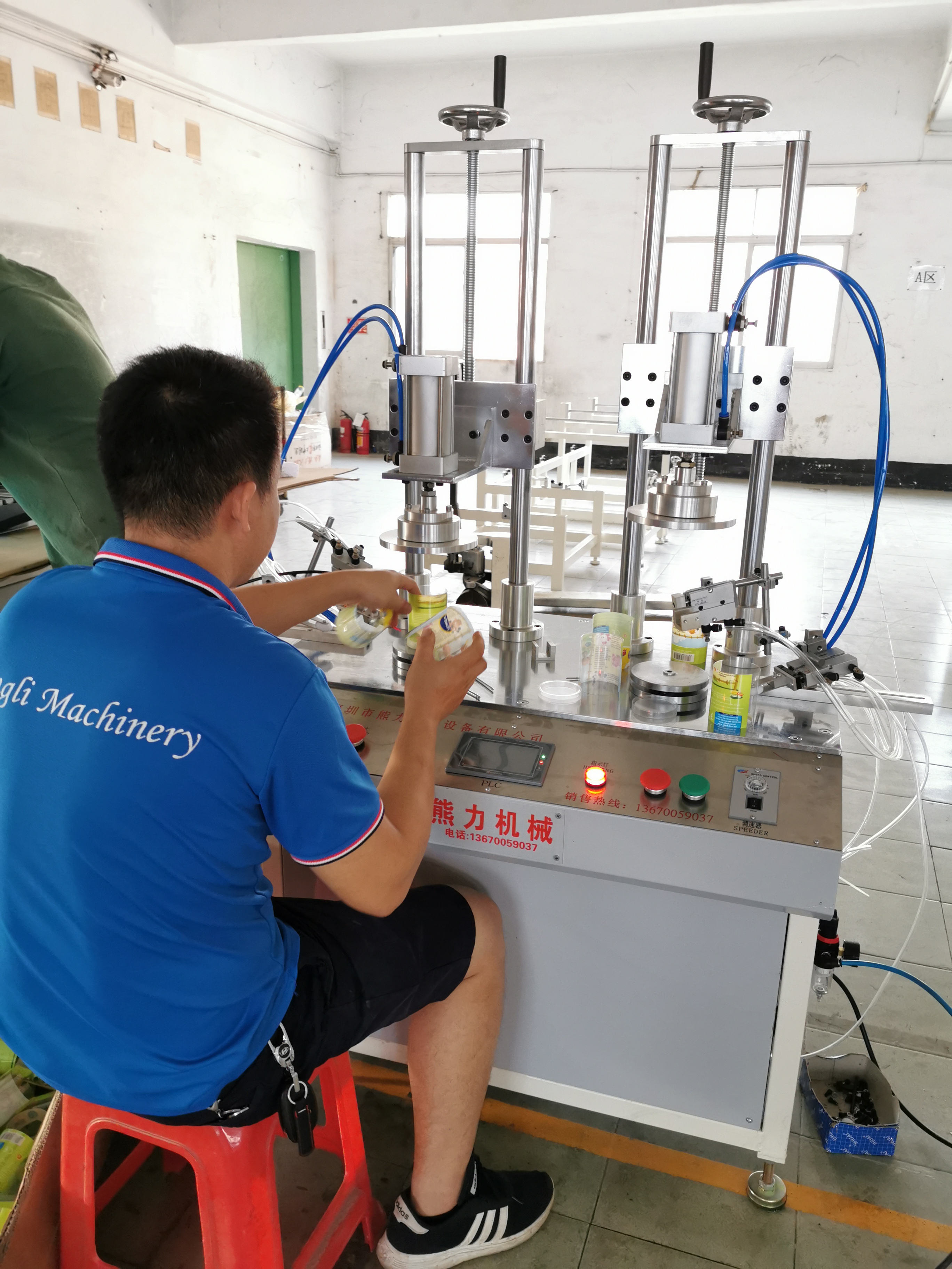 2、自動連續(xù)上膠,連續(xù)生產,自動粘合圓筒蓋。